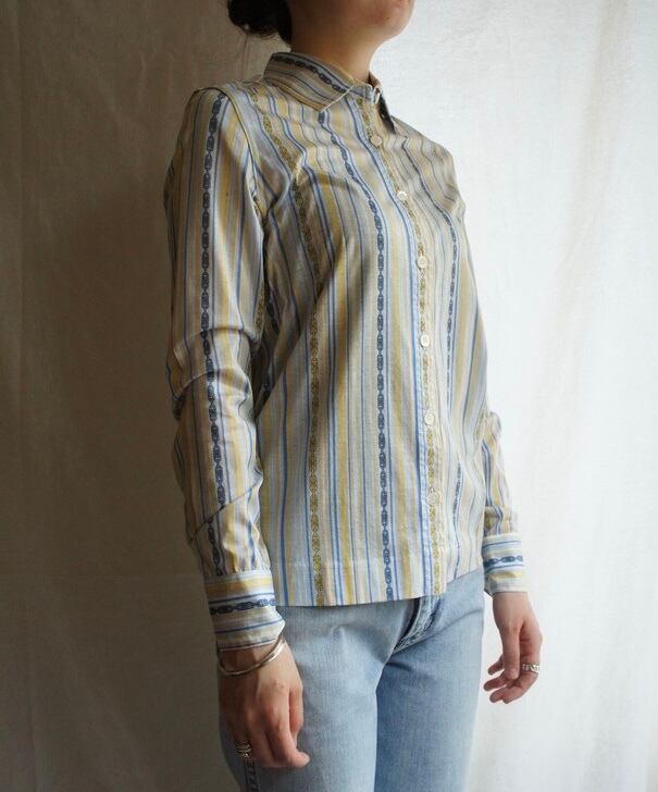 水色と黄色のストライプ柄がさわやかなCELINE 1970~80's Vintageブラウス!