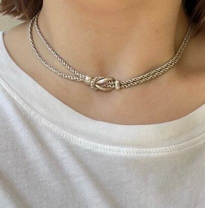 ツイストチェーンにノットデザインのモチーフが動きのあるTIFFANY Silver925ネックレス!