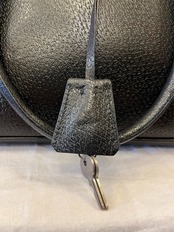 凹凸のあるブラックレザーにシルバーのZIPがクールなPRADAのハンドBag!