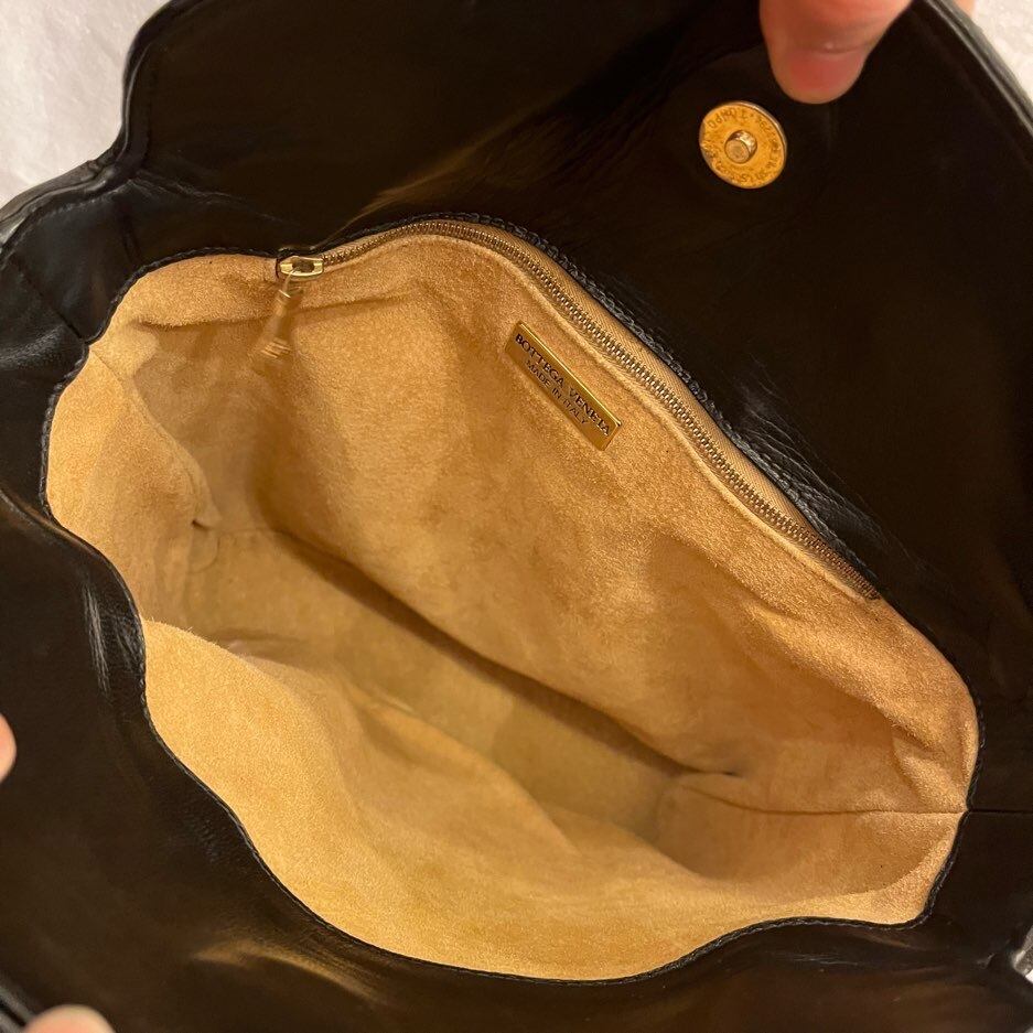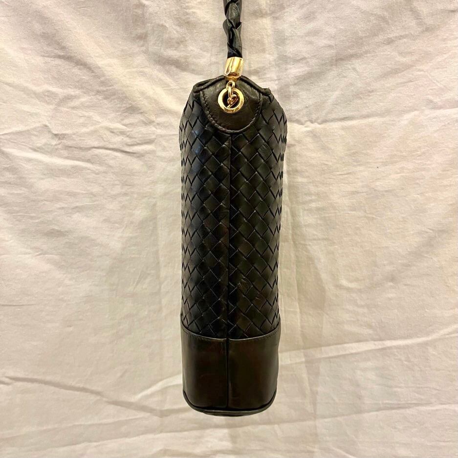 BOTTEGA "Intrecciato" Black Leather Shoulder Bag