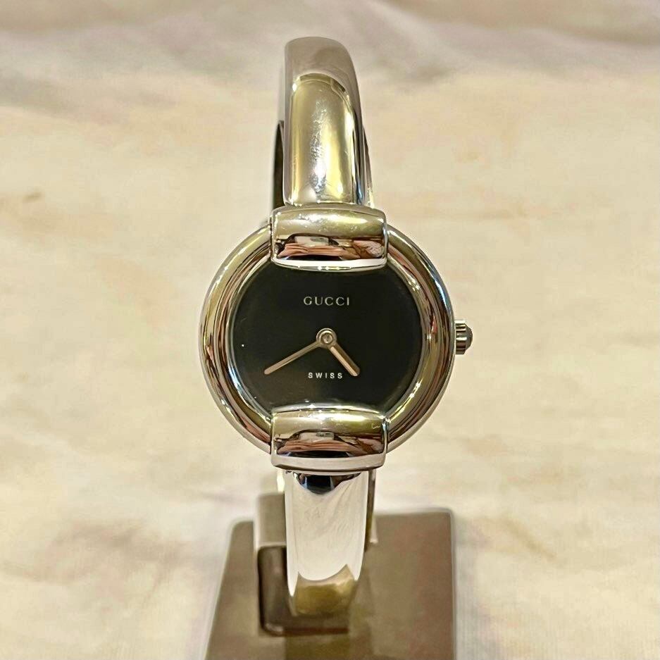 GUCCI "Round×Black Dial" Metal Bangle Watch