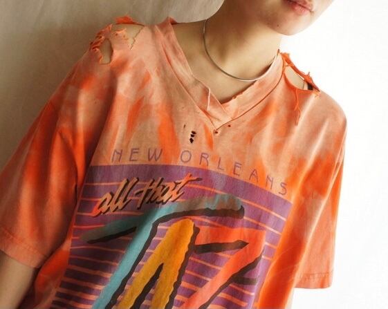 <men’s>U.S. 1980's "all that JAZZ" Tie-Dye Crashed/Damaged T-Shirt