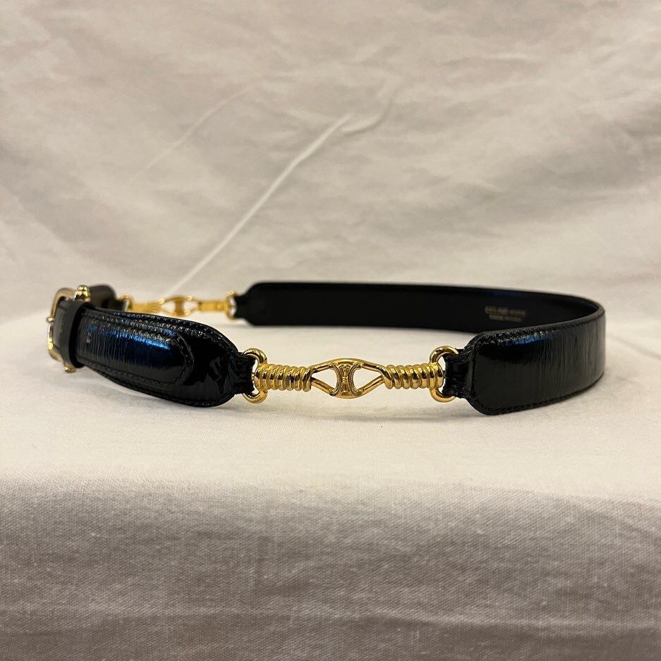 つやのあるブラックベルトにゴールドのマカダムロゴが華やかなCELINE 1980's Vintageベルト!