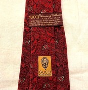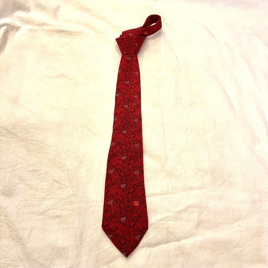 GUCCI 1980's "Dog & Rock" Red Silk Tie