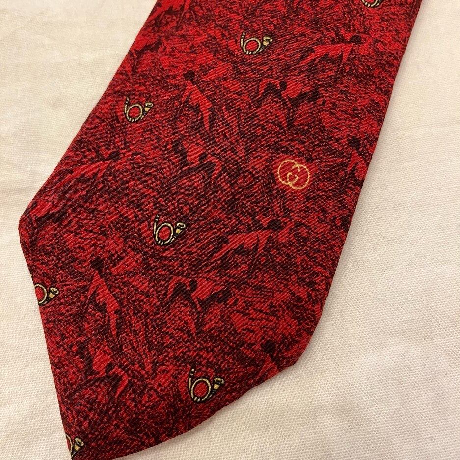 岩肌に佇む犬の絵柄がクールなGUCCIの1980'sネクタイ!