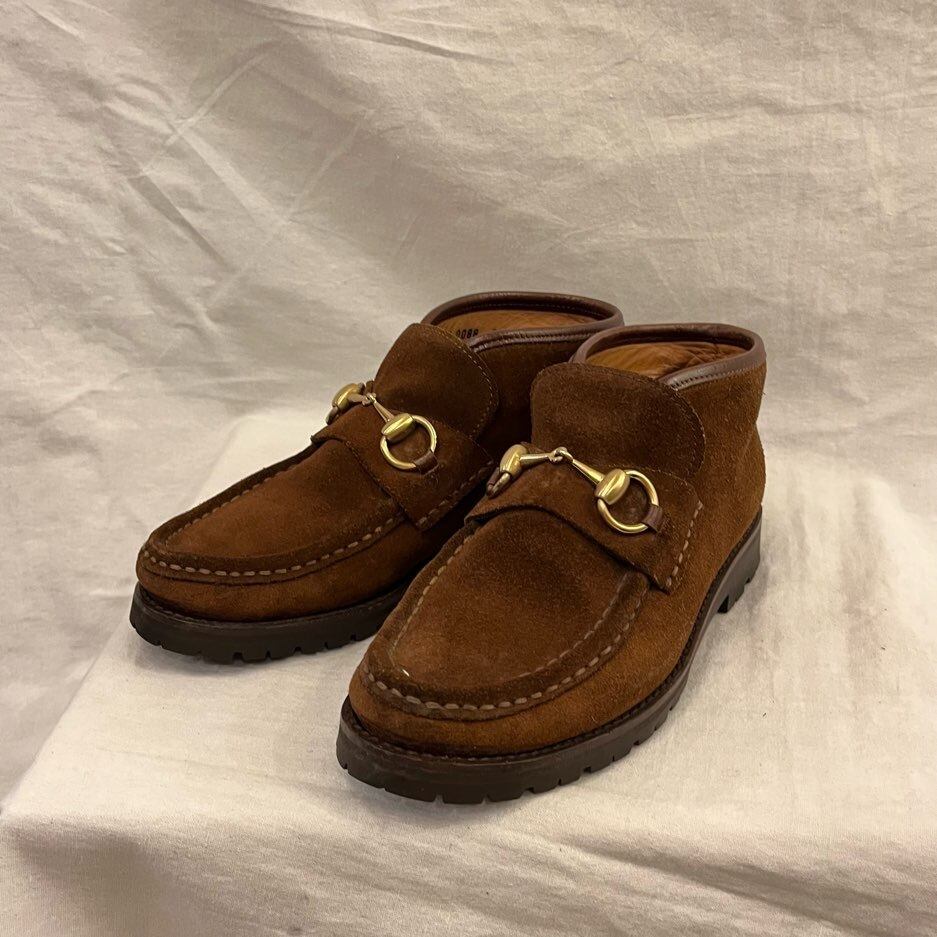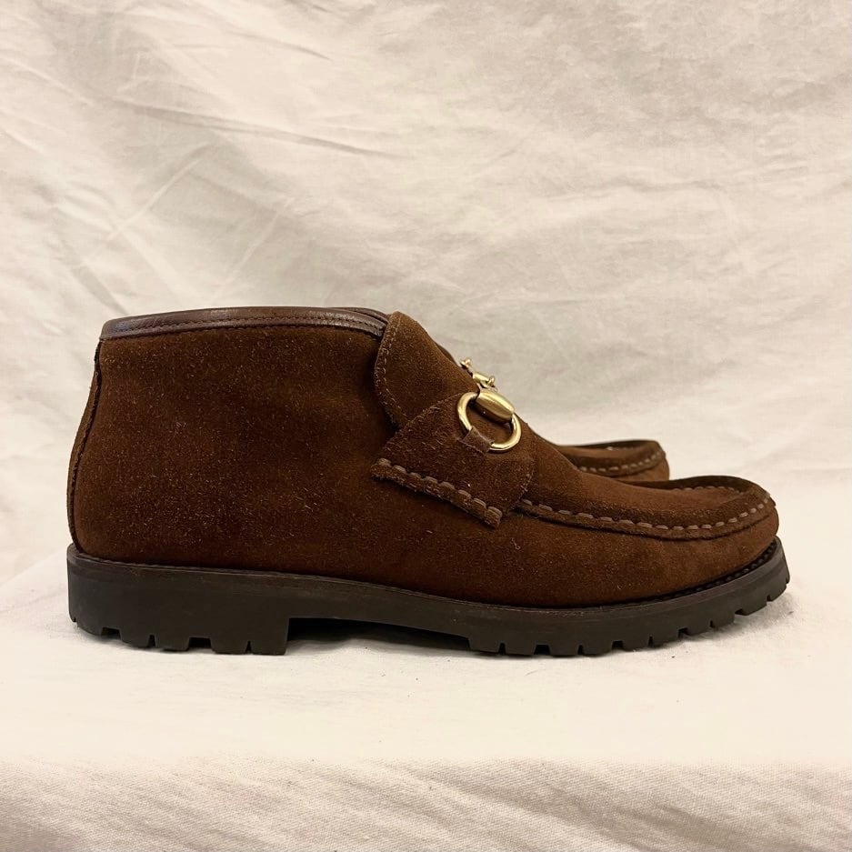 ブラウンのスエード地にゴールドのビットがクラシックな雰囲気のGUCCiビットローファー!