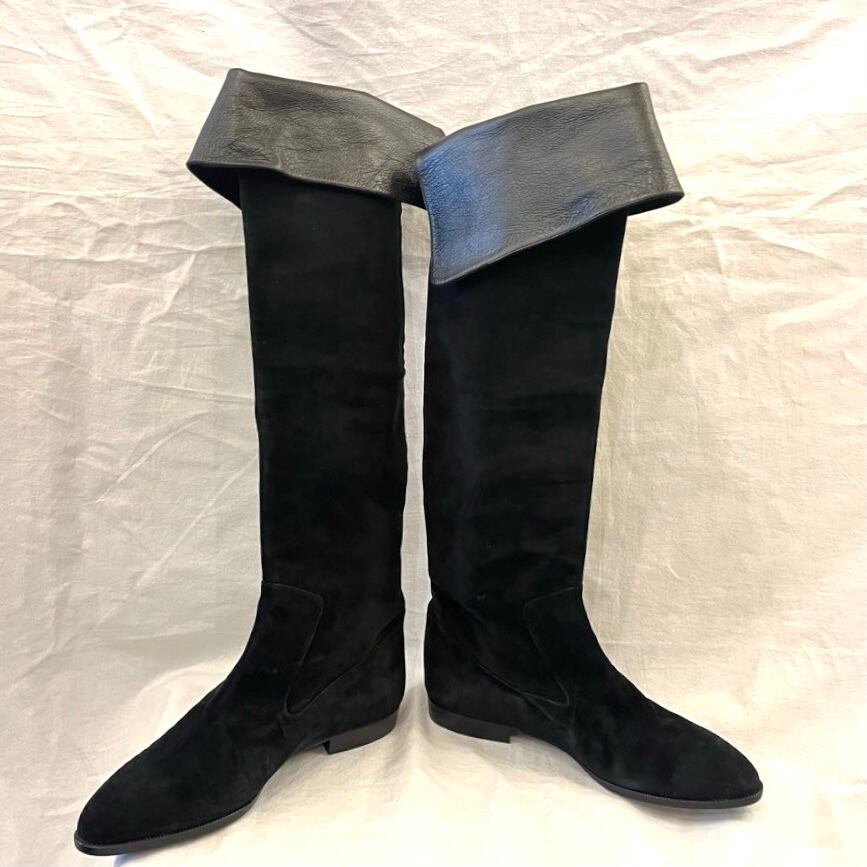 ブラックのスエード地が大人なHERMESのロングブーツ!上部の切り替えが締まりのあるデザイン☆