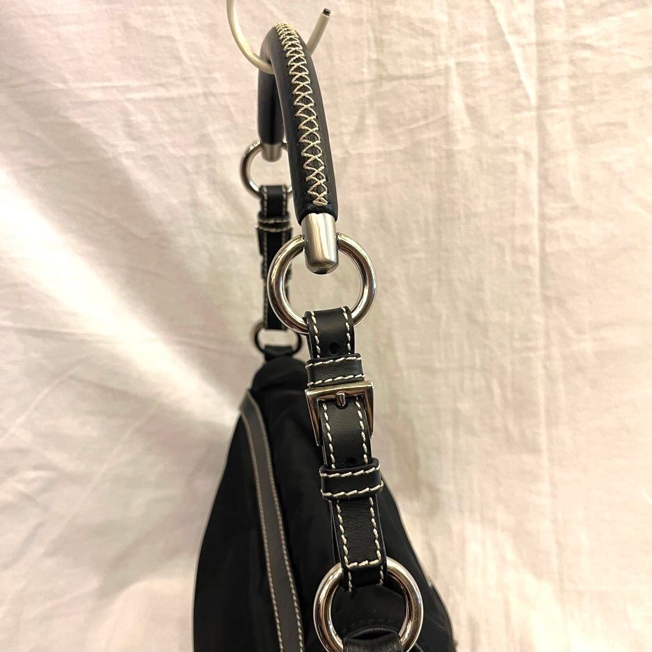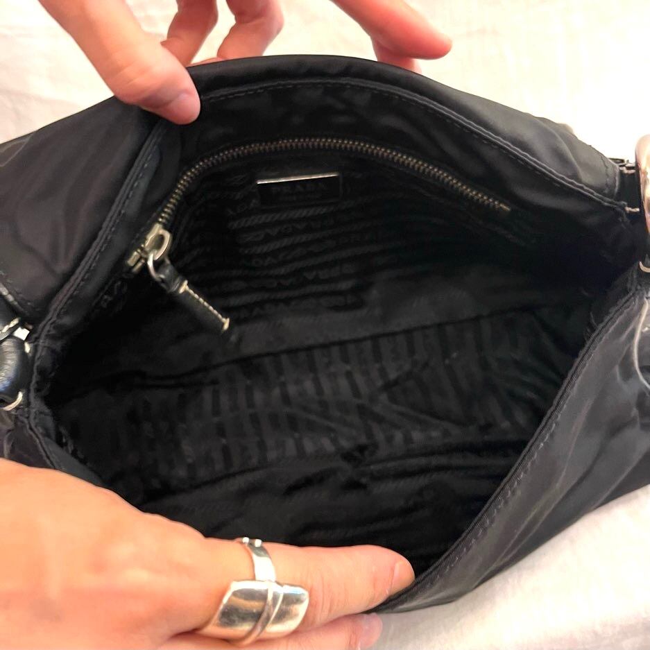 ブラックのナイロン地と持ち手のレザーがGoodバランスなPRADAのハンドBag!