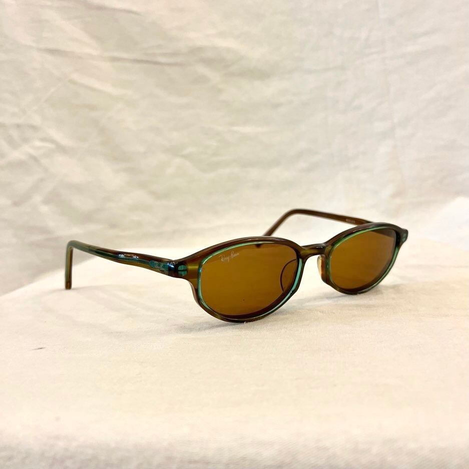 シアーブラウンの中にきらりと光るエメラルドグリーンがメダカのようなRay Banのサングラス!