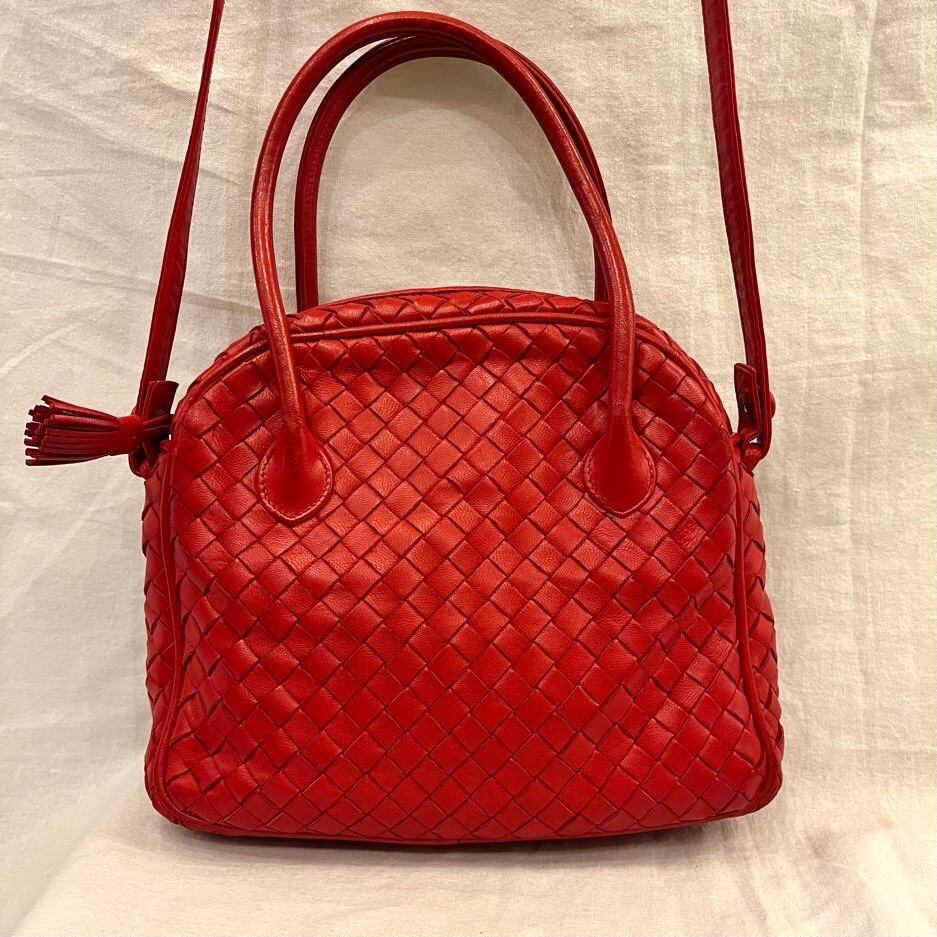 BOTTEGA "Intrecciato" Red Leather Hand/Shoulder 2-Way Bag