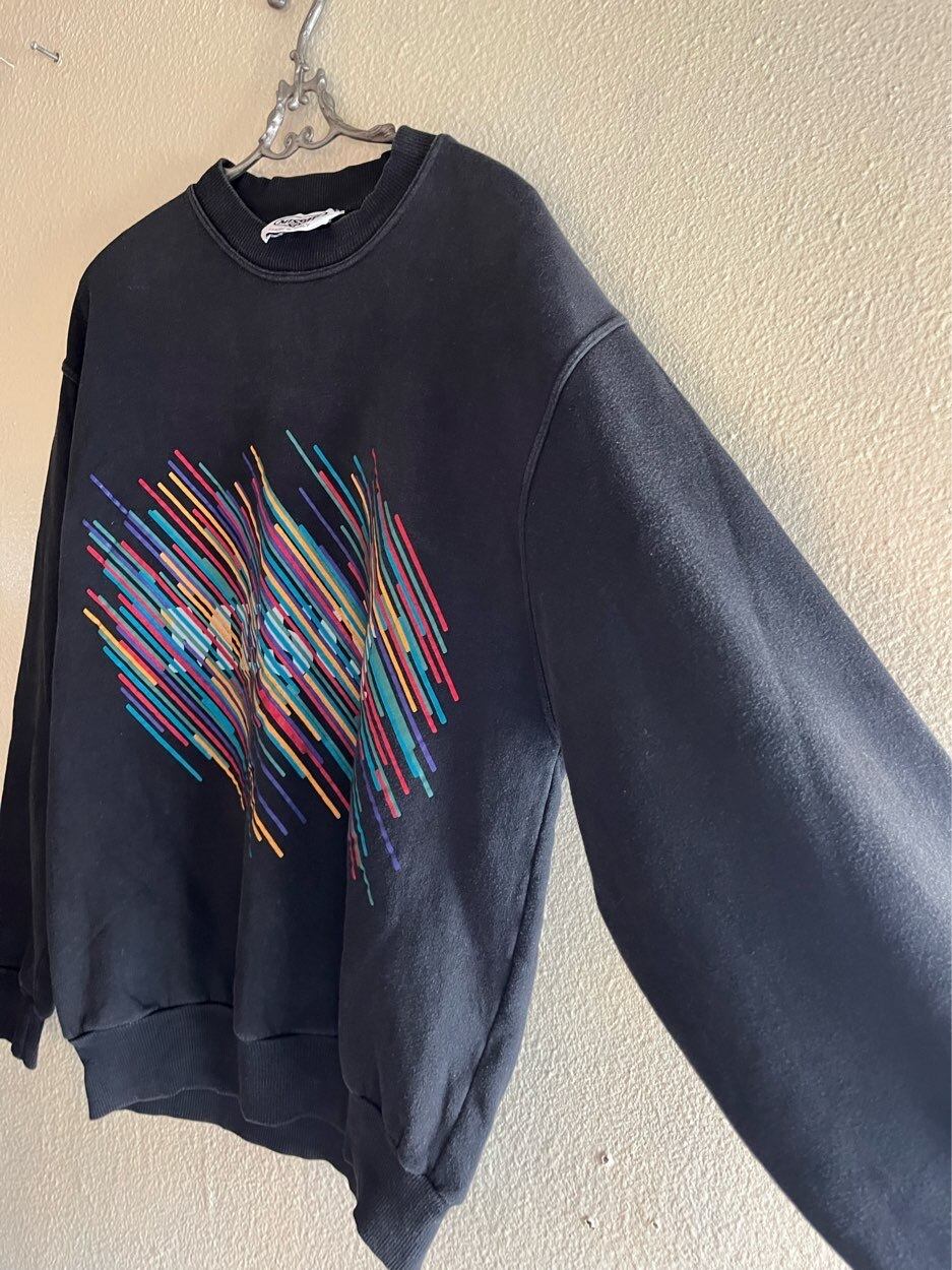 ブラックのボディにマルチカラーのモチーフがインパクトのあるMISSONIのスウェット!80’s vintage