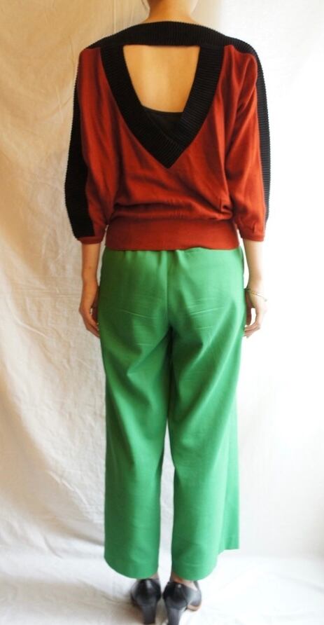 テラコッタとブラックのバイカラーがユニークなLANVINのニットトップス☆80’s vintage
