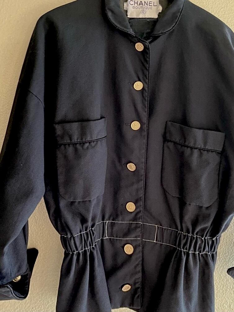 後染めのチャコールブラック地にゴールドのココシャネルボタンが輝く、80’s CHANELのジャケット ☆