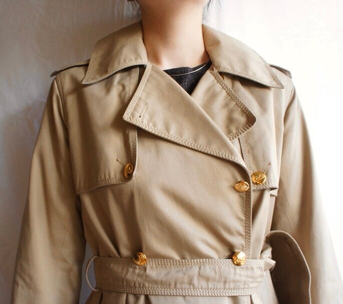 ゴールドの馬車ロゴボタンが映えるCELINE 1970~1980's Vintageトレンチコート。