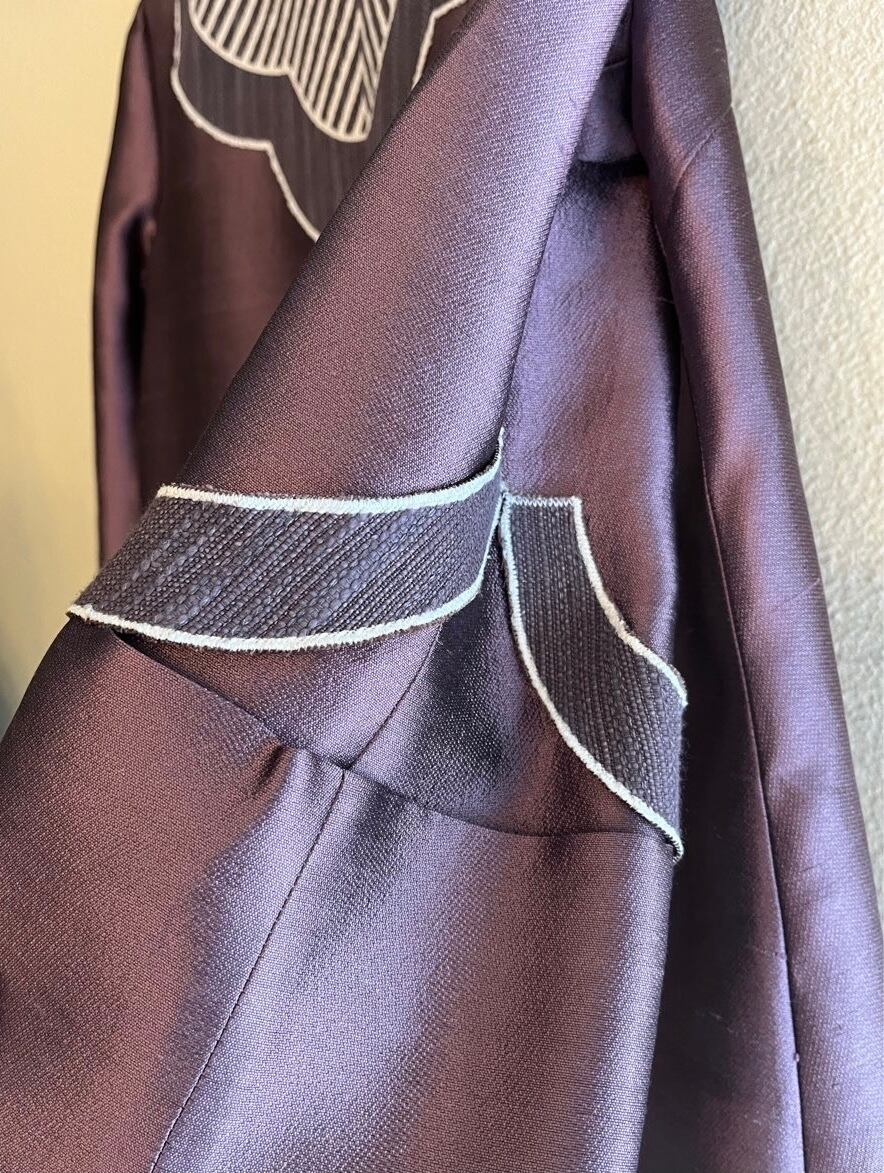 後ろには家紋のようなモチーフもあり、後ろ姿までインパクトのある一枚です☆
