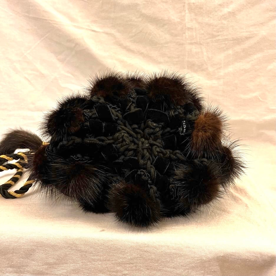 U.S. "Mink Fur" "Pom Pom" Drawstring Shoulder Bag