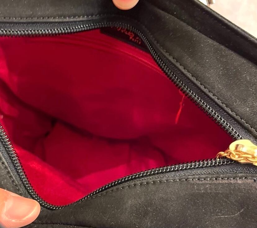 ブラックのスエード地に手描き風のハートモチーフがかわいらしいCHARLES JOURDANのハンドBag!