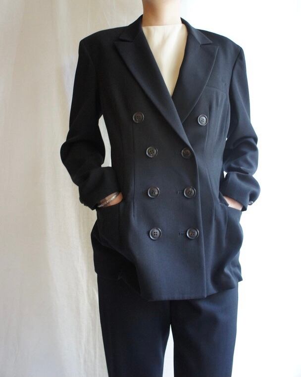Yohji Yamamoto Black Wool double Jacket & Pants Set-Up