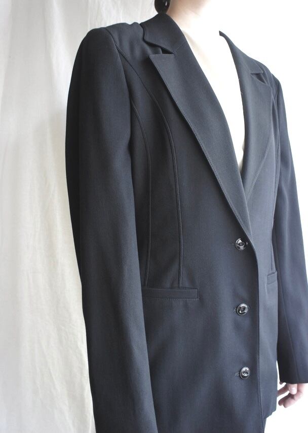 Jacketは肩からウエストのステッチが、さりげなく計算された滑らかなラインを醸し出して、とても美しく、さらっとした生地感が軽やかな質感☆