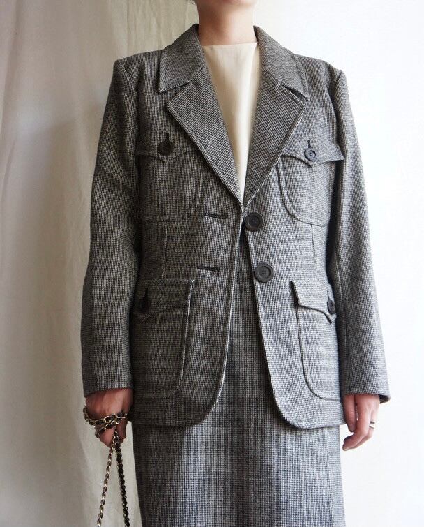 YSL "rivegauche" 90’s "Tiny Plaid Pattern" Jacket & Skirt Set-Up