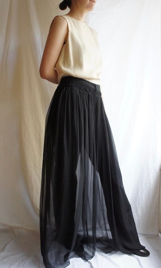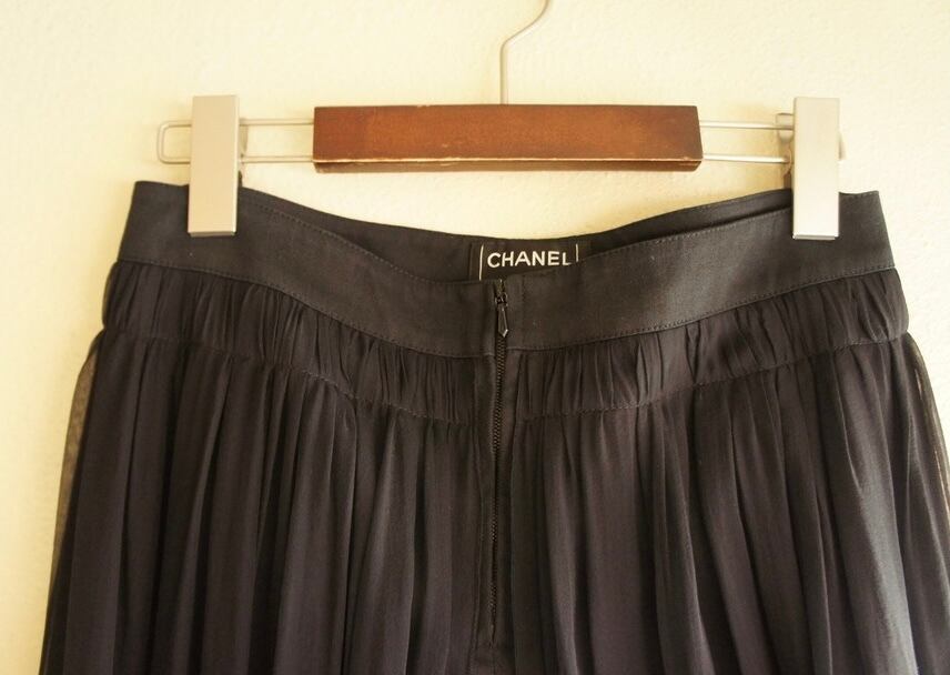 CHANEL "Black" Silk Sheer Skirt × Cotton Pants