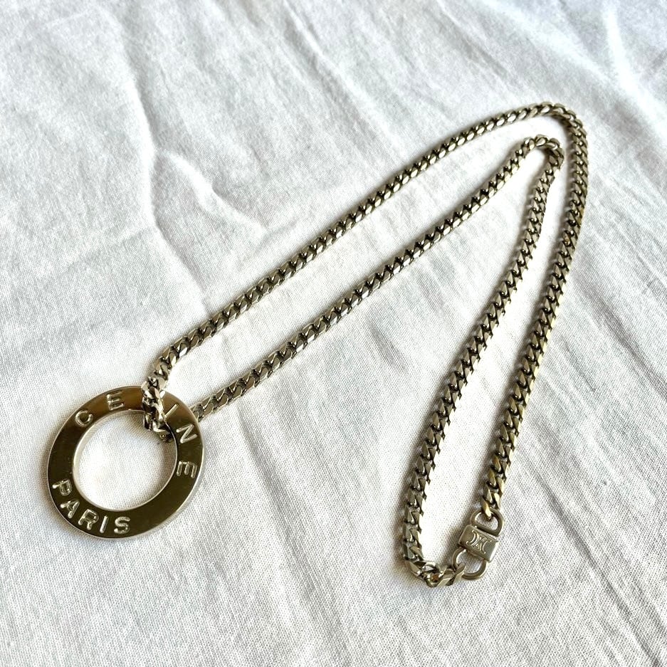 CELINE "Circle Logo" Metal Necklace