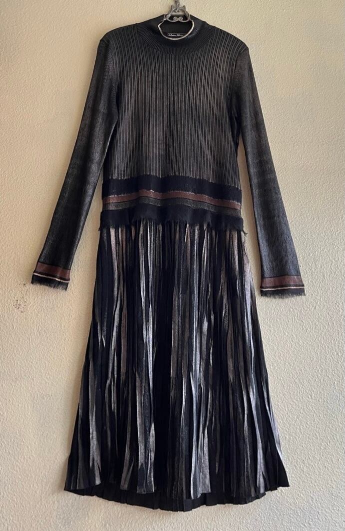 メタリックな質感が都会的なFERRAGAMOのニットドレス!