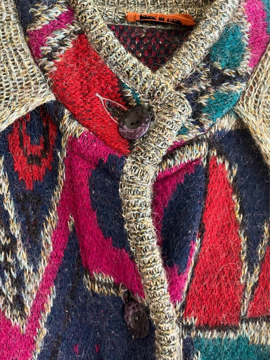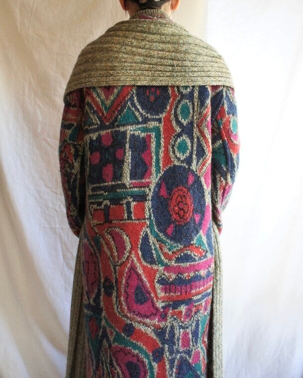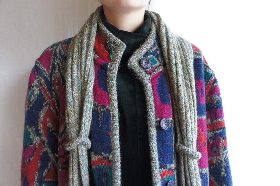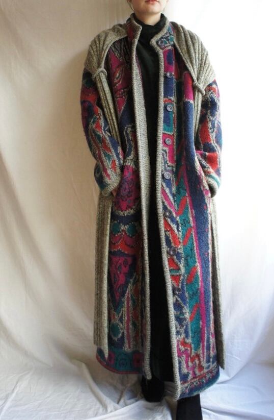 肩からストールをかけたようなデザインがユニークなMISSONIのニットコート!