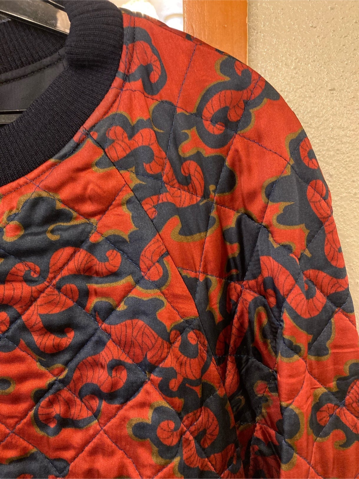 つやのあるキルティング地にNavyのリブニットがメリハリのあるデザイン☆
