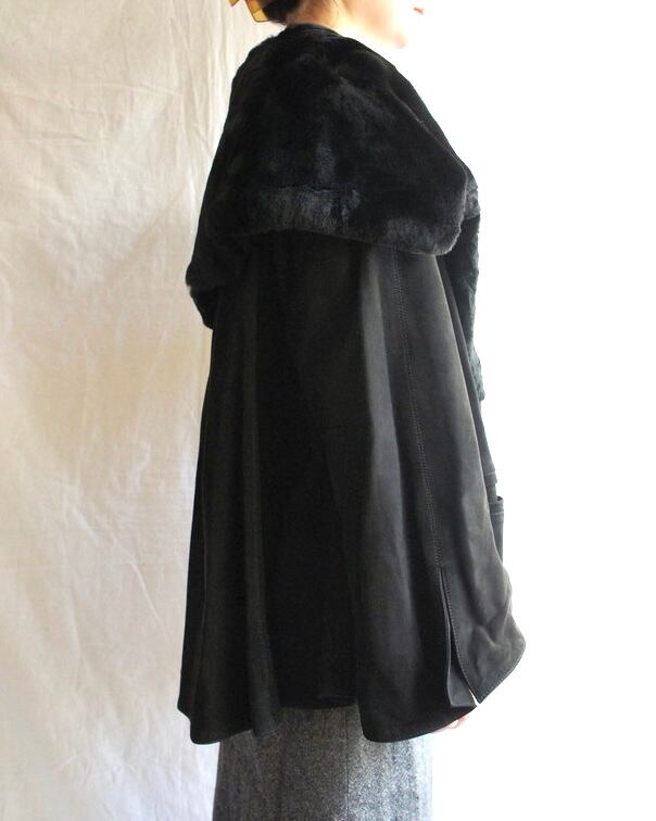 MONTANA 1980's "Big Collar" Black Mouton × Fur Coat