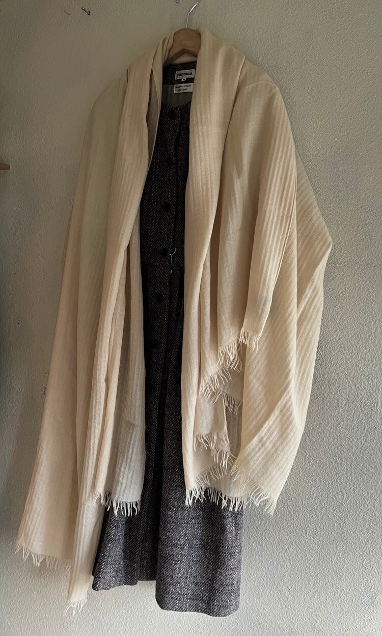 大き目のサイズなので、様々な巻き方、ショールのハオリやひざ掛けにも使えます◎