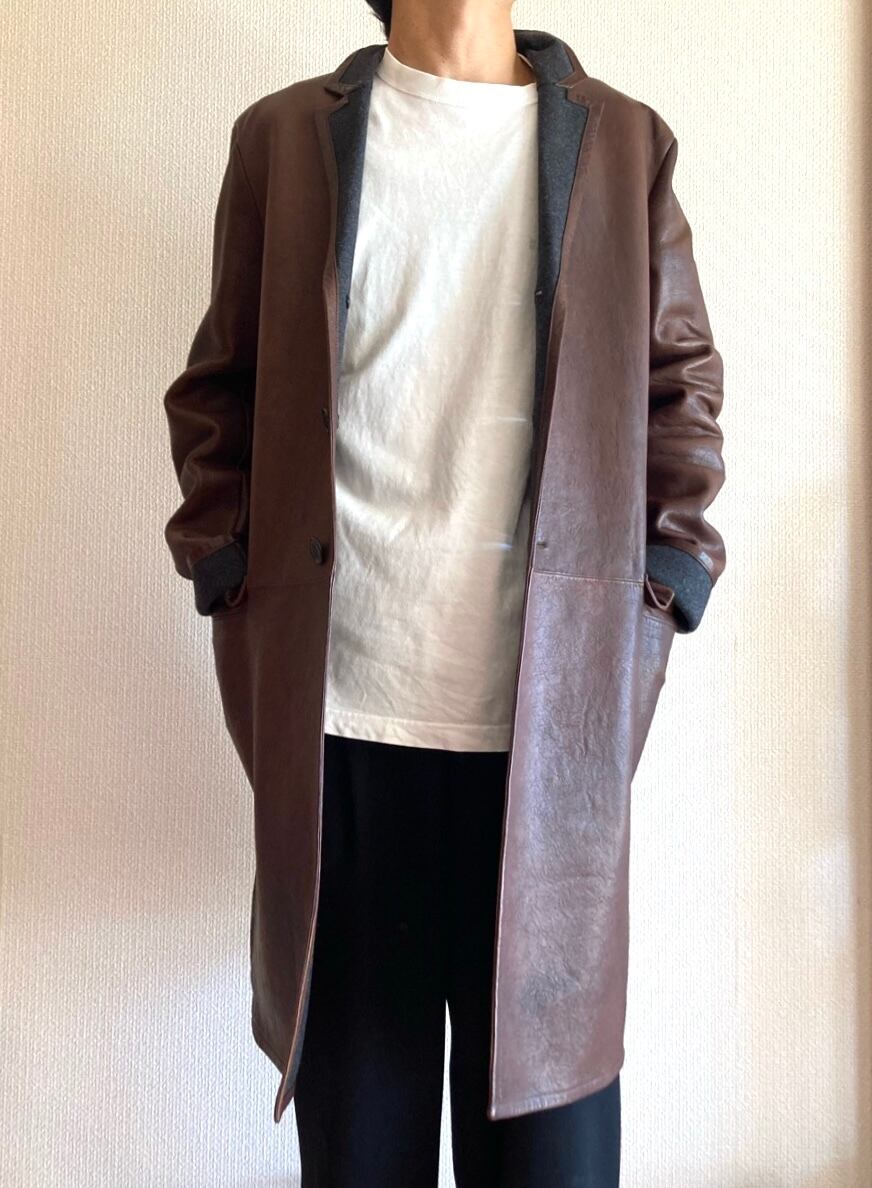 スタイリッシュな高級レザーのJilSanderのチェスターコート。