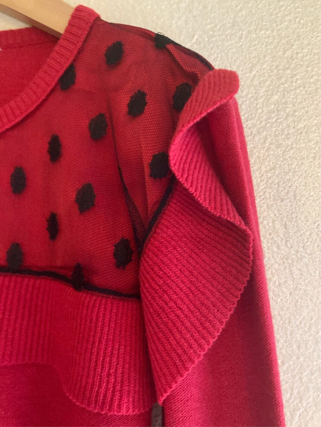 SONIA RYKIEL 80's dot lace sweater Red