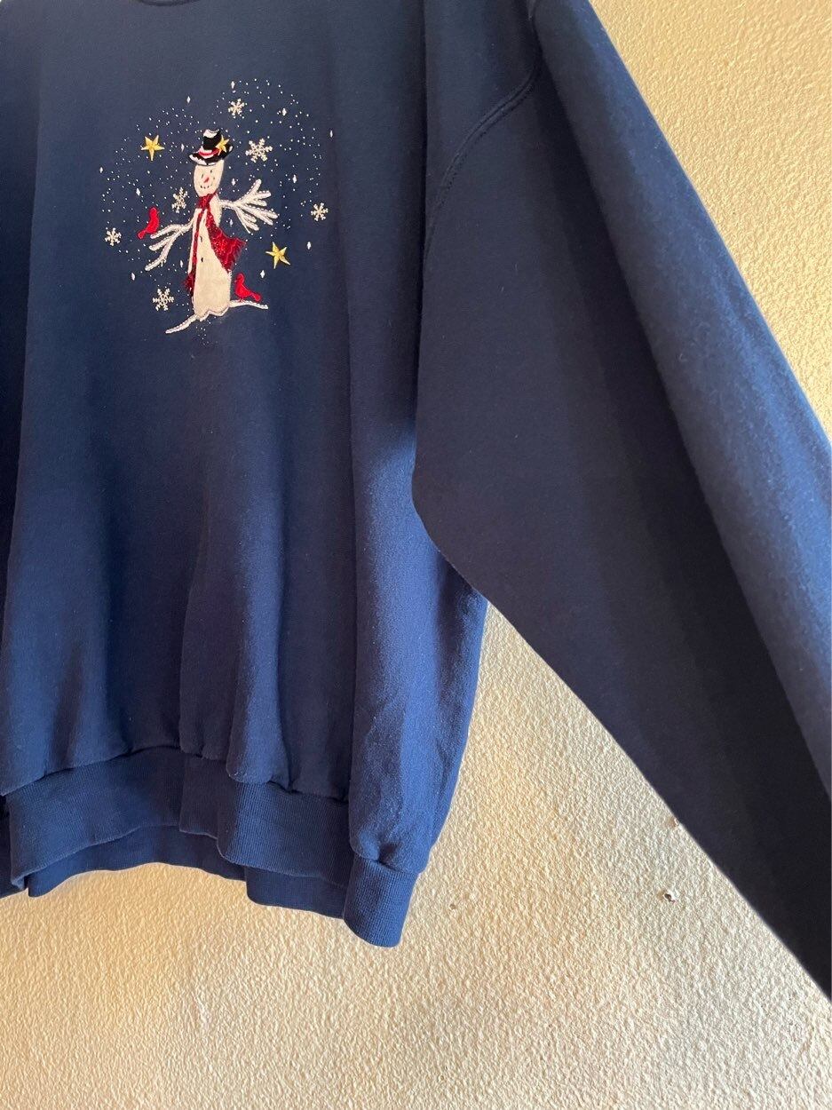 Dark Navy地に刺繍で施されたスノーマンがとびっきりcute!