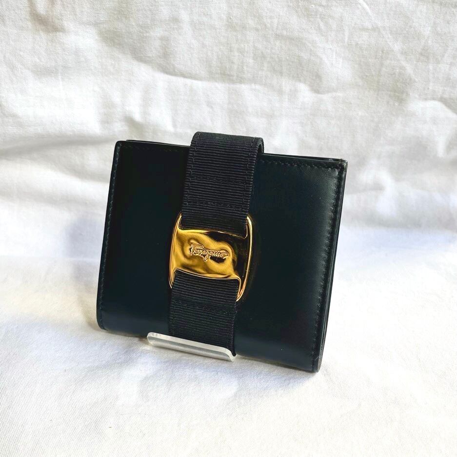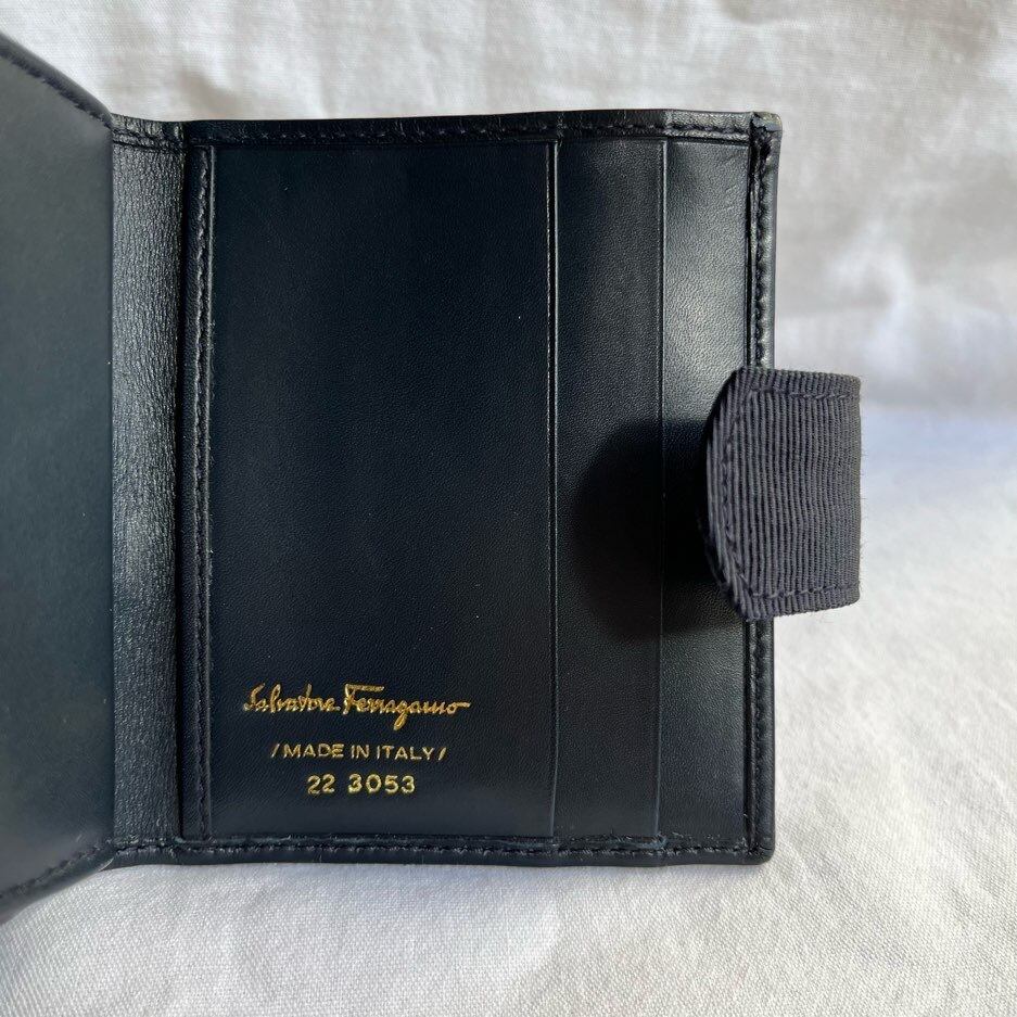 FERRAGAMO "Vara" Navy Leather Folded Wallet -Dead Stock!-