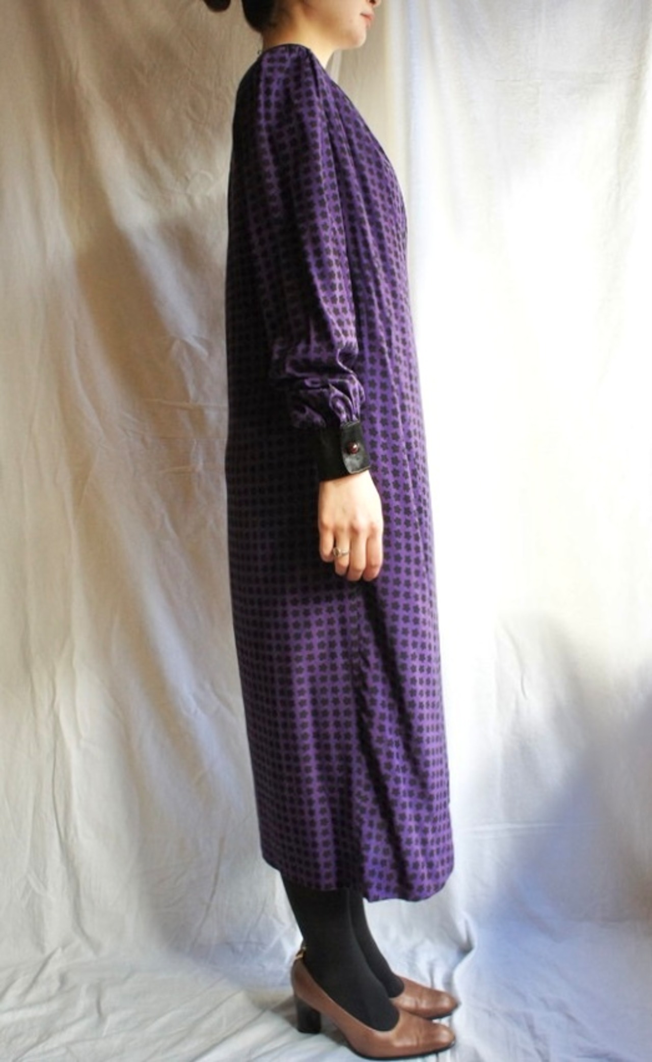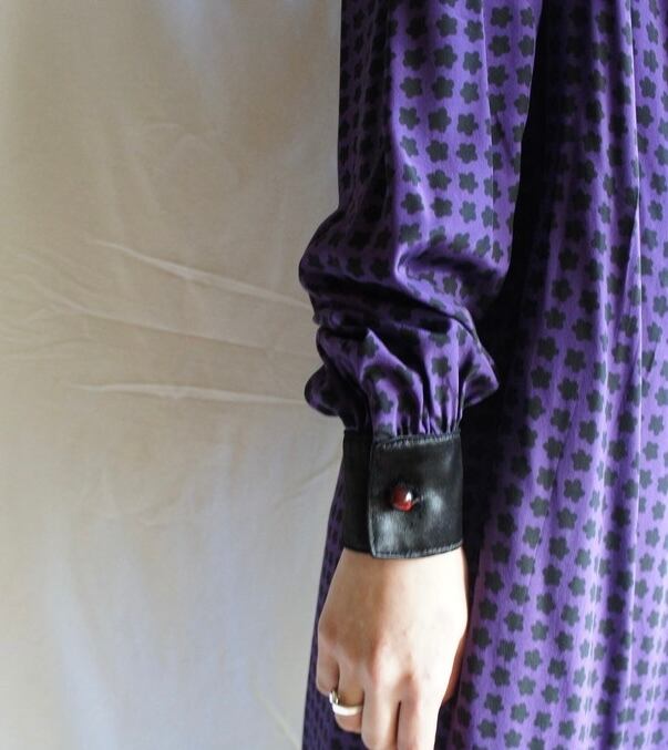 パープル時にブラックの花柄が可憐なBALENCIAGAの1980's Vintageワンピ!