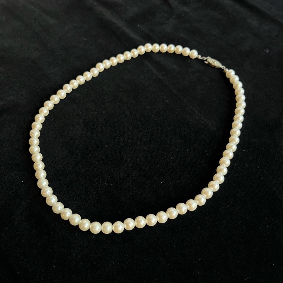 わずかにアイボリーがかった色味がエレガントなガラスパールネックレス!