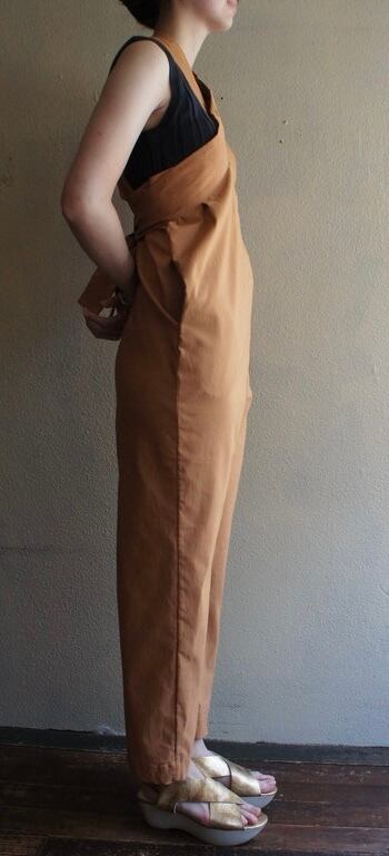 伸縮性がありサラッとした生地感が心地よいサロペット。