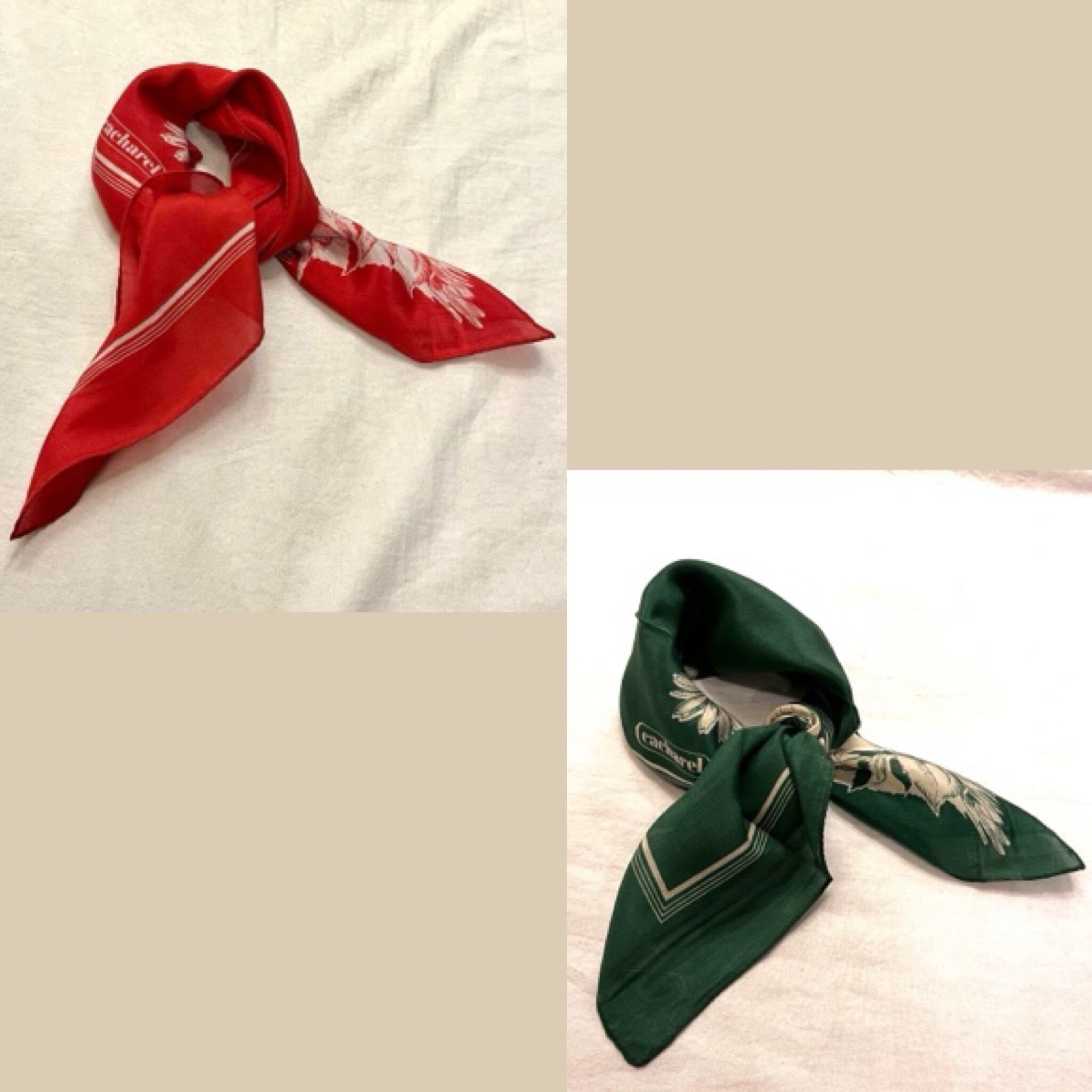 CACHAREL Flower Print Scarf<2set> -Green, Red- -Dead Stock!-