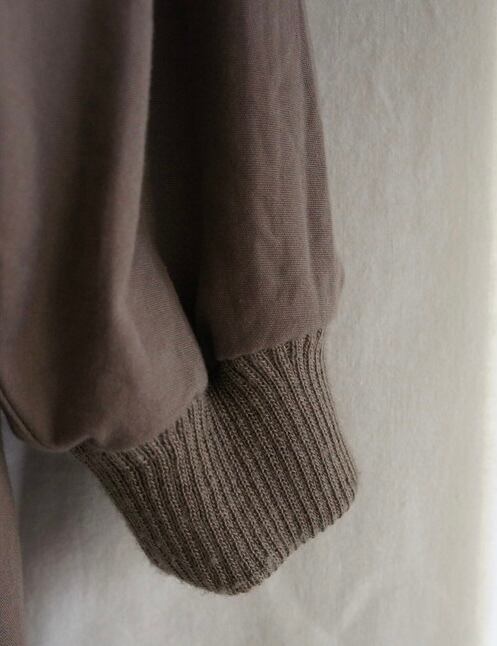 袖や首元のリブニットがスポーティーさあり、たっぷりした袖ぐり、かなり落ちた肩ラインが丸みを帯びたさすがのシルエット!