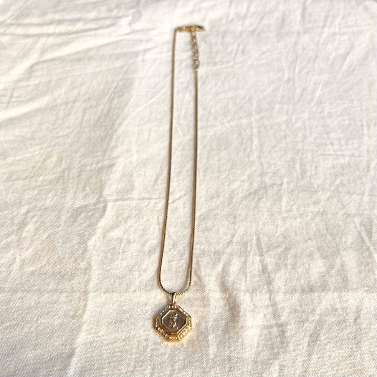 八角形に施されたラインストーンが華やかなYSLのネックレス!