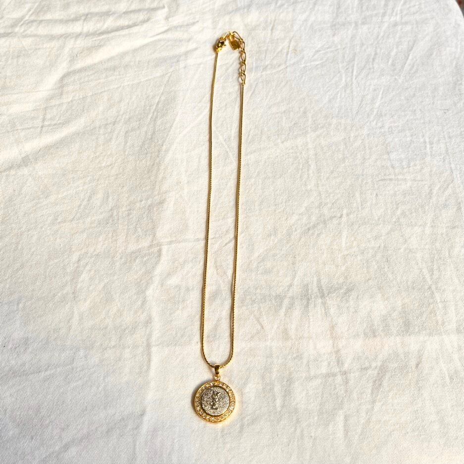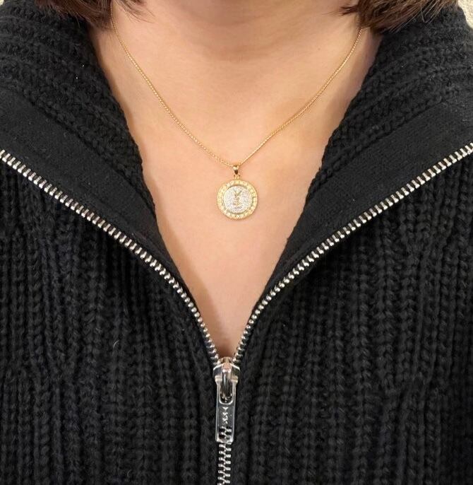 YSL "Silver Round Motif × Rhinestone" Necklace