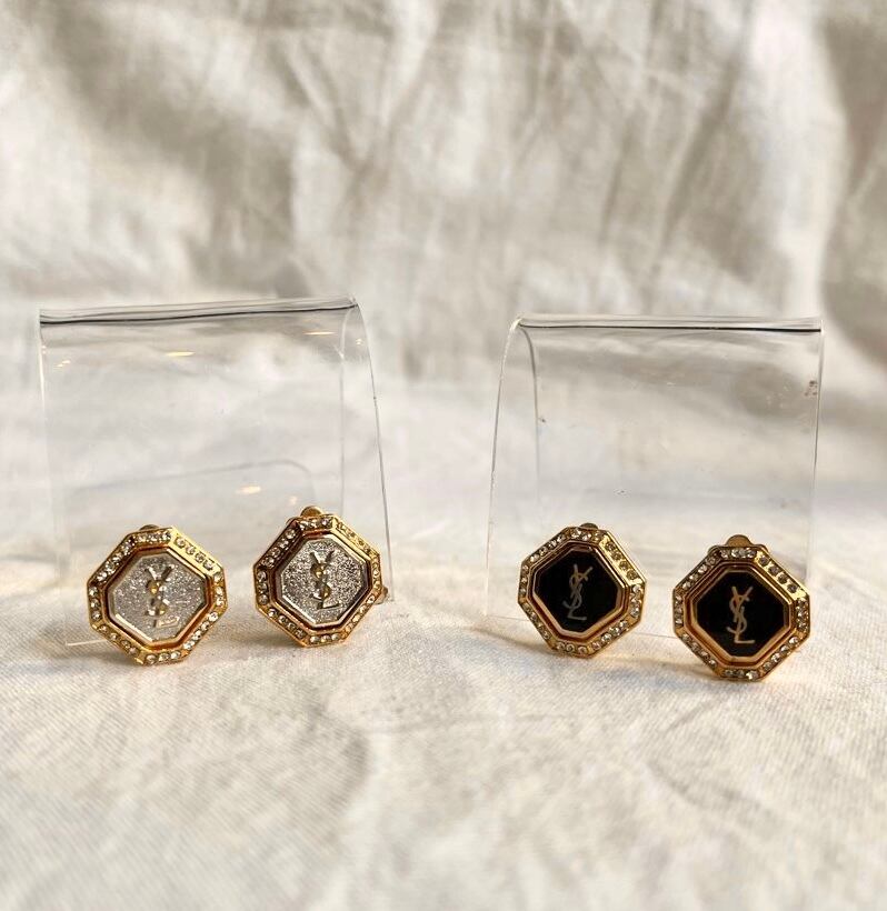 YSL "Black Octagon Motif × Rhinestone" Earclip
