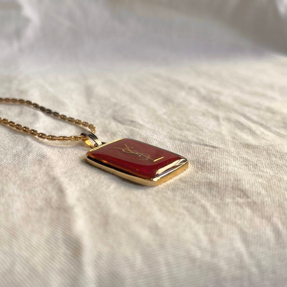 ぷくっとした長方形のモチーフが立体的なYSLのロングネックレス!