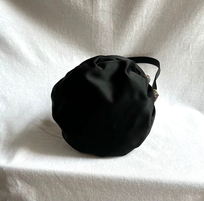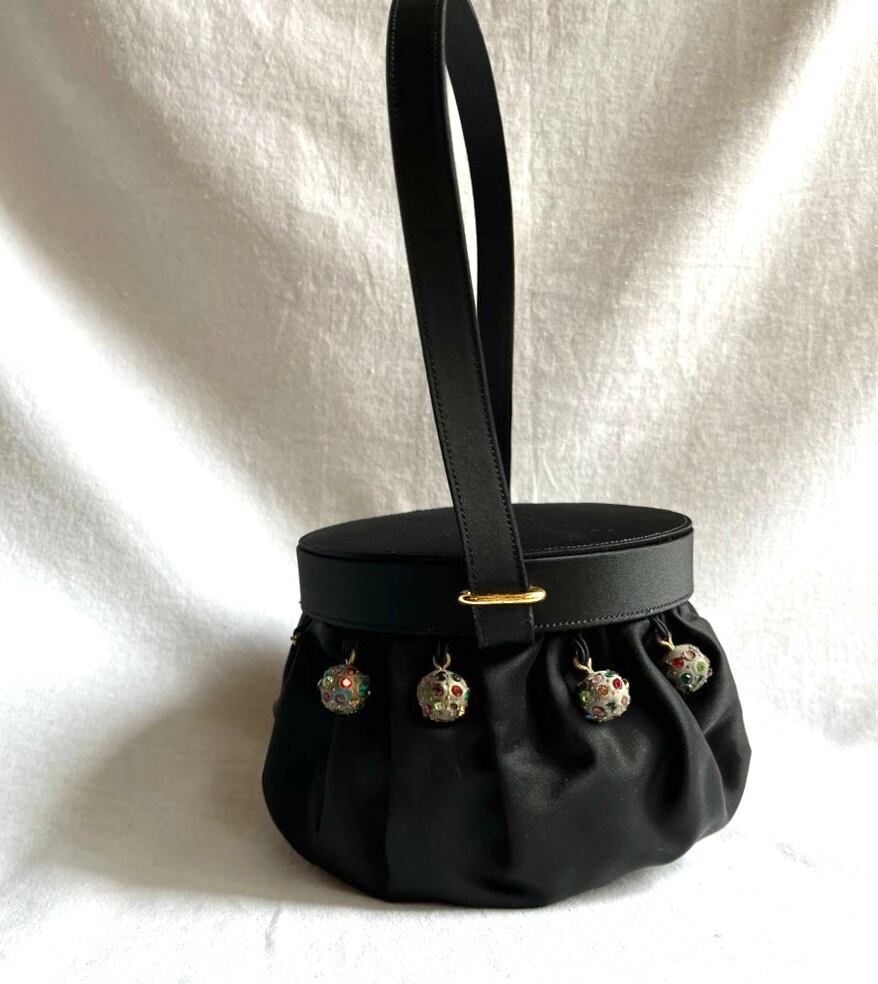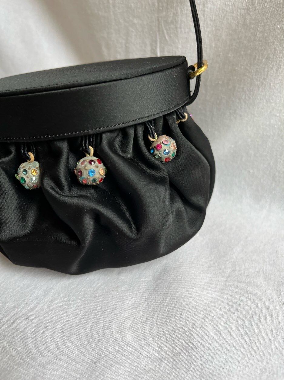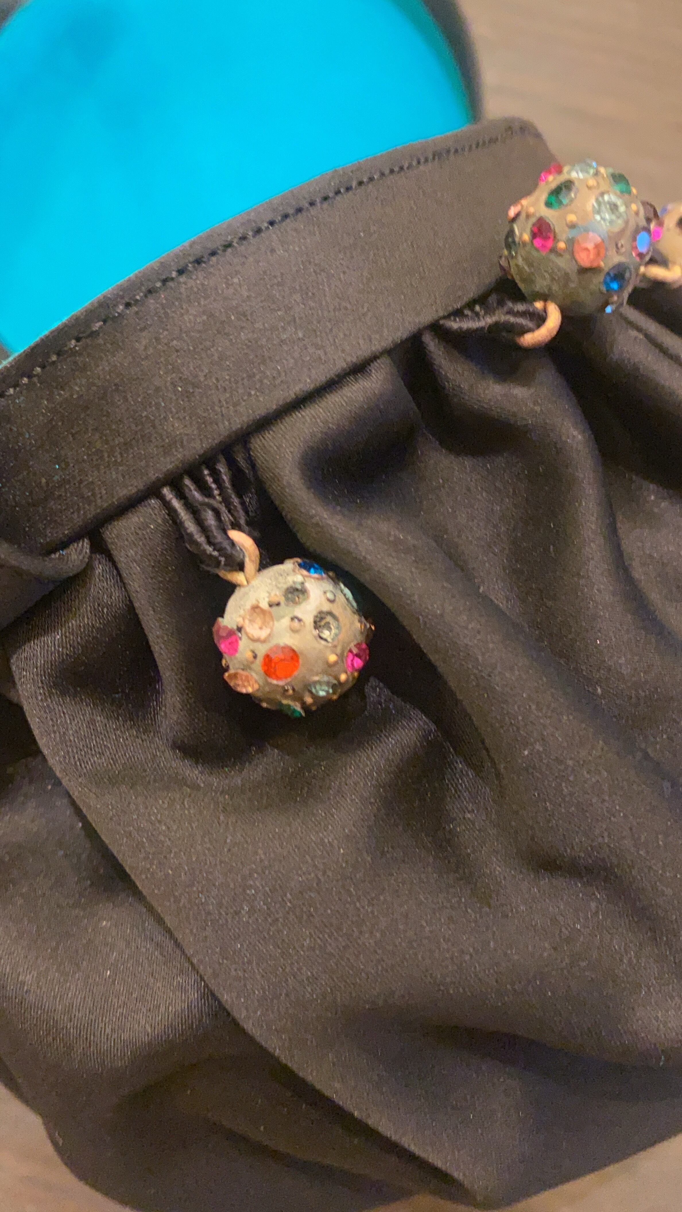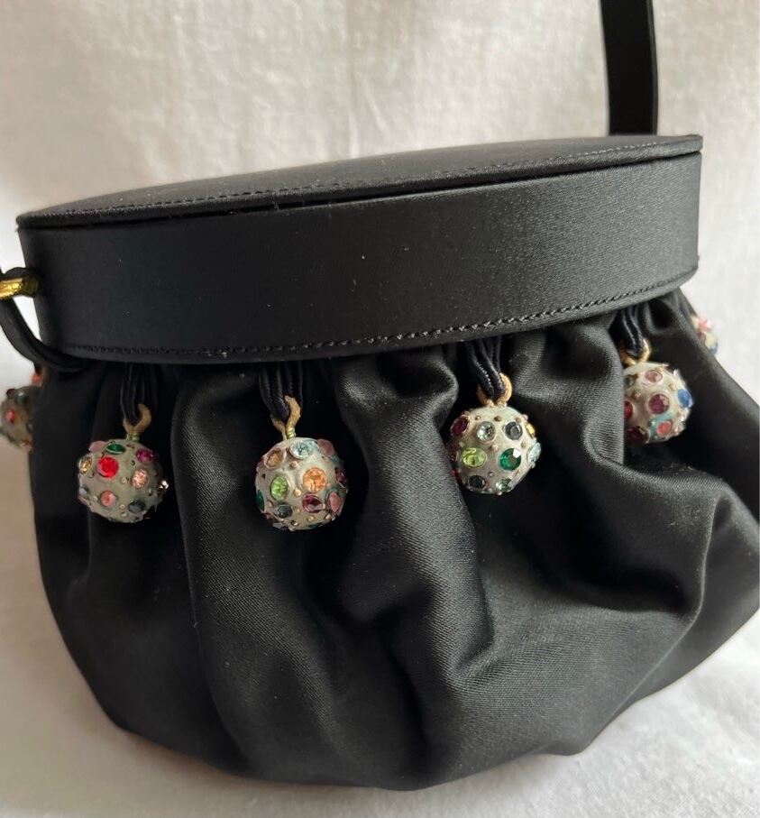 RENAUD PELLEGRINO "Beads Ball" Black Satin Hand Bag