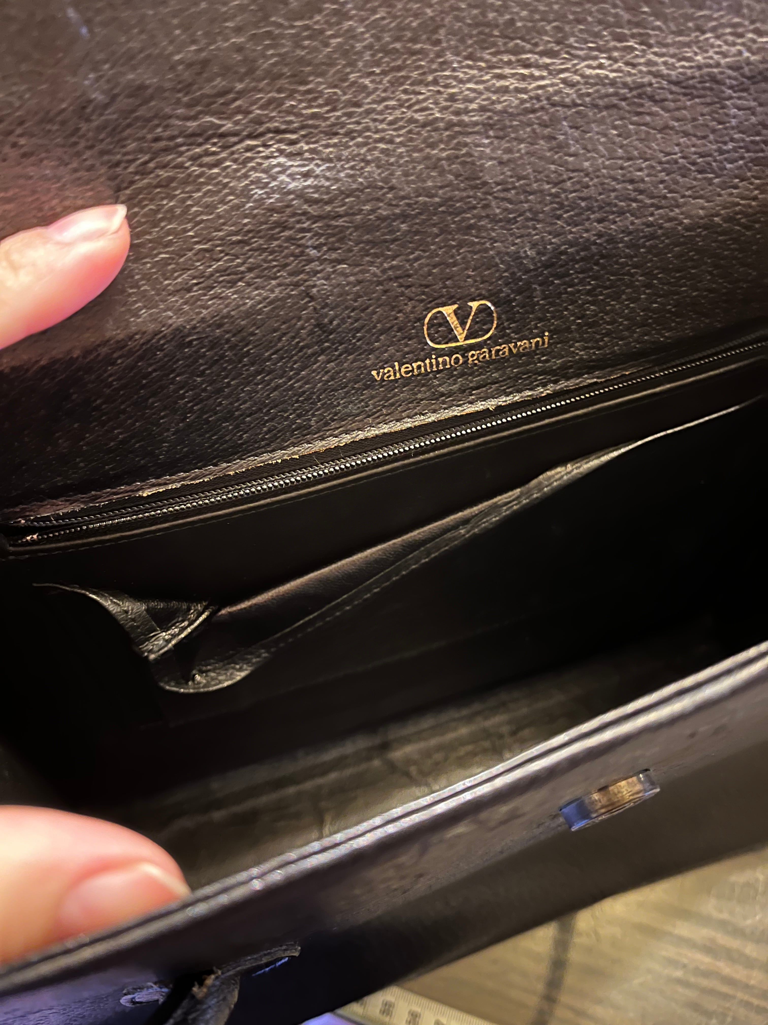 ブラックレザー地に封蝋のモチーフがユニークなVALENTINOのハンド Bag!