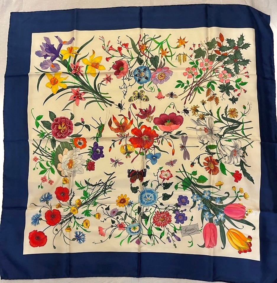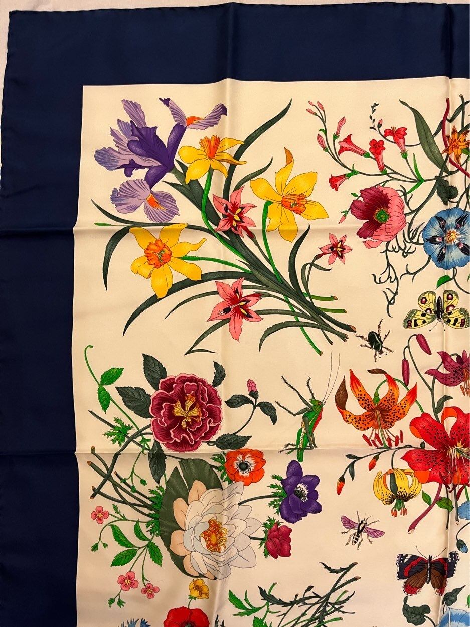 GUCCI "Flora" Navy Scarf -Dead Stock!-