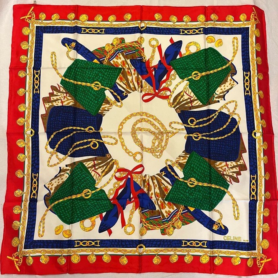 Bagやくつ、スカーフに大振りのチェーンの絵柄がCELINEらしいスカーフ!