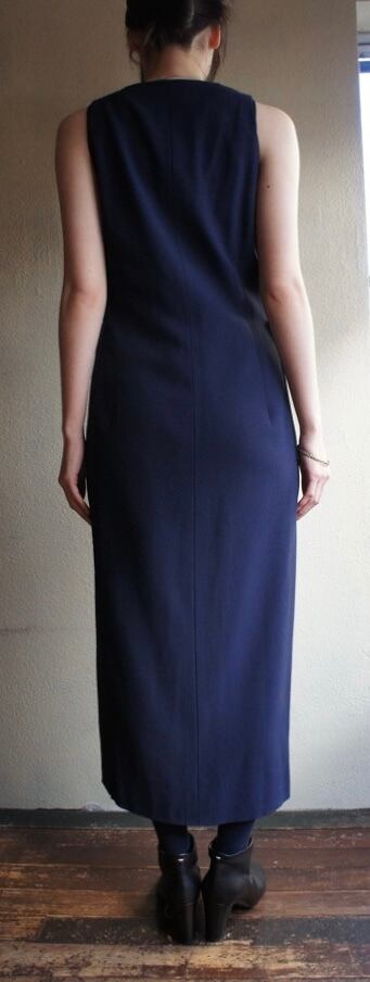 ネイビー地にゴールドのマカダムボタンが映える、90’s Vintage Celine ドレス。