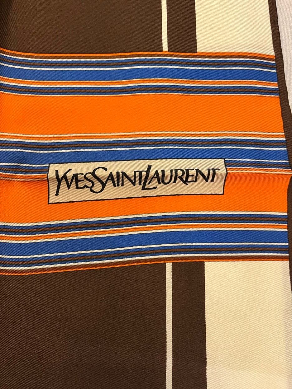オレンジとブルーのラインがポイントに効いたYSL Vintage長方形ストール!